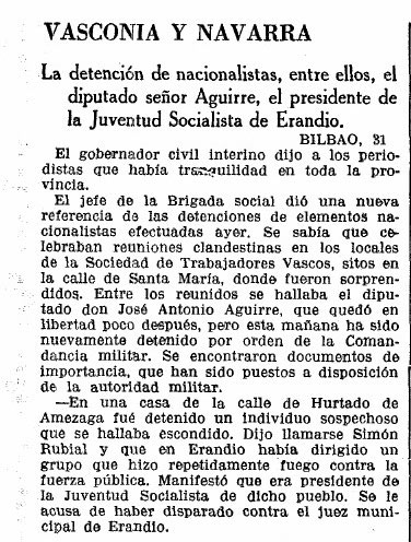 Altxamenduan parte hartu zuten beste asko bezala, Ramon Rubial atxilotu egin zuten. Baina bere lagunekiko leialtasunarengatik atxilotu zuten. Bere lagun Hurtadok kontatu zuen gertatutako guztia: “Egun batean istilu ikaragarria zegoen Udaletxeko enparantzan. Poliziek ez zekiten zer egin. Alkatea, Benito Casal, Reuskoa, hogeita bederatzigarren artikulua ezarriz izendatuta zegoena, erre egin nahi zuten… Ramon iritsi zen eta honako hau esan zidan: «Aizu, Josetxu, lelo horiei esaiezu alde egiteko hortik». Alkatea, epailea eta idazkaria erdi ezkutuan atera genituen, eta eurekin gindoazela norbaitek sei hogeita hamabosteko pistola atera zuela ikusi nuen ezkutaleku batetik eta pare bat tiro egin zituen… Hura amaitu eta Rubial atxilotu egin zuten. Aita etorri zitzaidan semearen alde zerbait egin ote nezakeen galdezka, polizietako bat nire amonaren etxean bizi baitzen. Poliziarengana hurbildu nintzen, esan nion eta hauxe erantzun zidan: 'Ondo da, tiro nork egin duen esaten badidazu, Ramon atera egingo dugu'. Nik banekien, banekien pilotua izan zela, baina ezin nuen salatu… Ramonek erantzukizun osoa bere gain hartu zuen eta berak ordaindu zuen dena. Erandion atxilotutakoetatik Ramon eta Gerardo Zárraga kondenatu zituzten, El Dueson bete zuten zigorra 36ko amnistiara arte. Askatu zituztenean harrera ikaragarria egin zieten Erandion”.