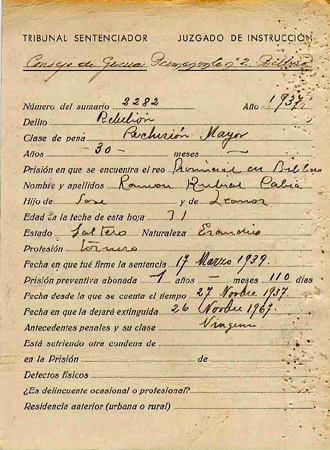 Ramon Espainiako hainbat espetxetan egon zen 1937ko azaroaren 1etik 1956ko abuztuaren 23an espetxetik zaintzapeko askatasunaren erregimena ezarrita atera zen arte.
