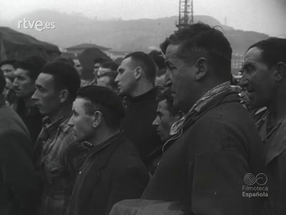 Grupo de estibadores y cargadores en el Puerto de Pasajes